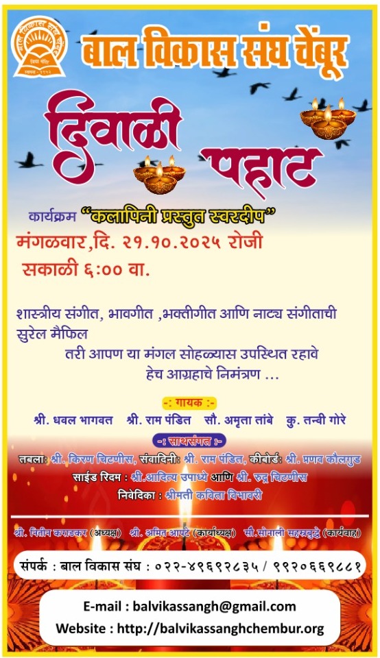 मंगळवार दि. २१.१०.२०२५ रोजी सकाळी ६.०० वा.