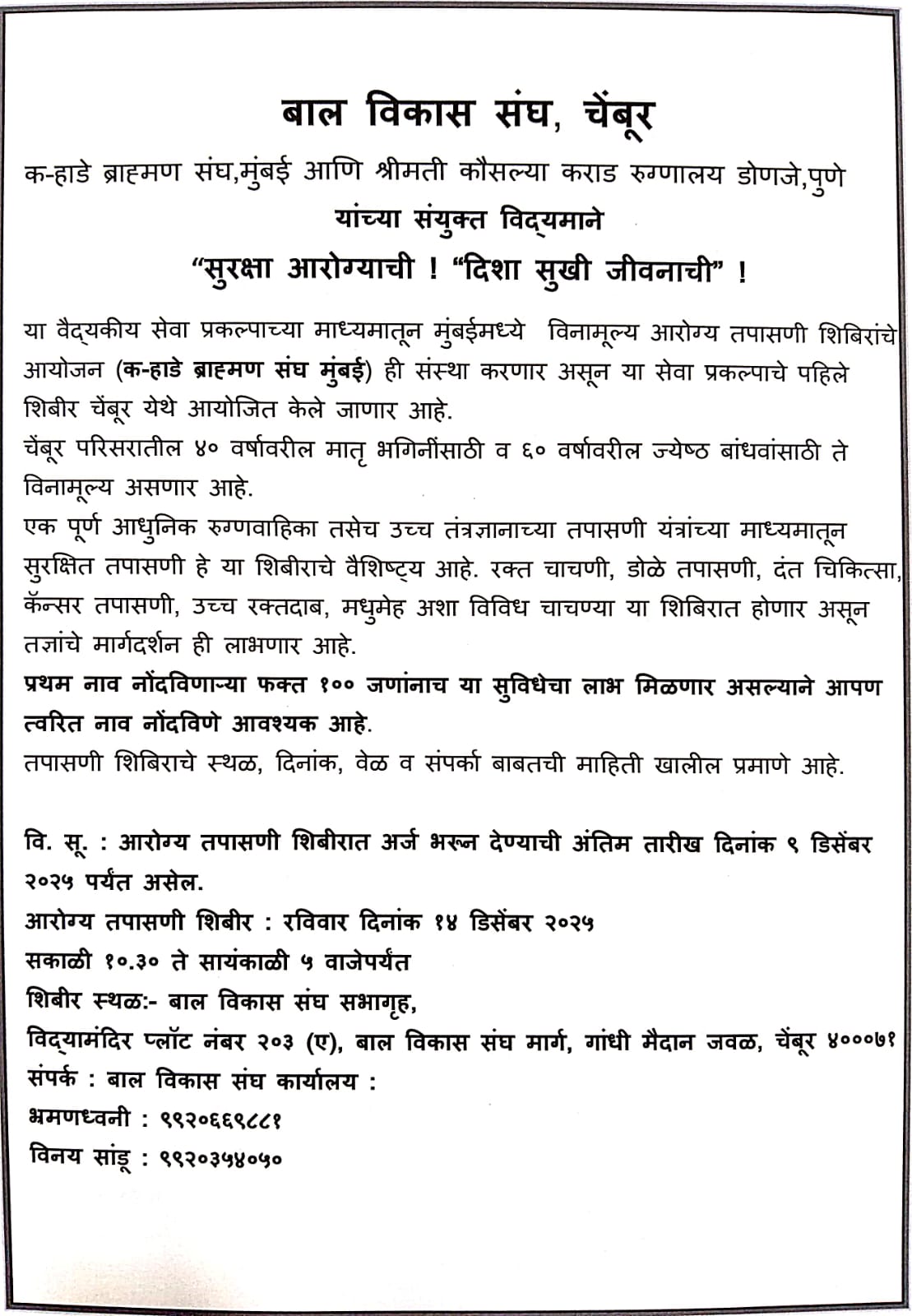 दि. १४ डिसेंबर २०२५ सकाळी १०.३० ते सायं. ५ वाजेपर्यंत